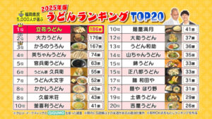 テレビで福岡県民5,000人が選ぶ2025年版うどんランキングTOP20