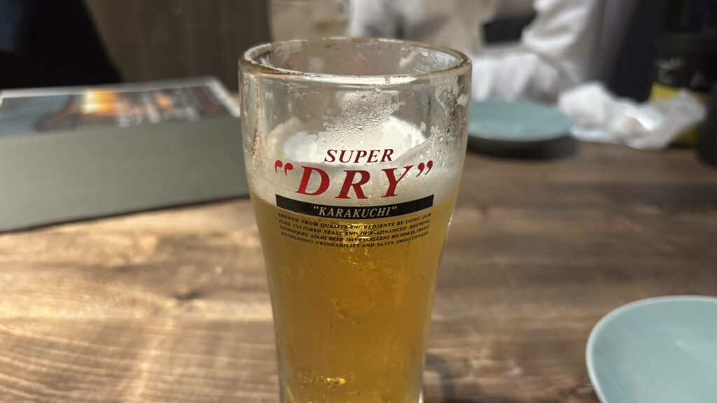 まずはビールで乾杯。一杯目のビールは美味しい!!