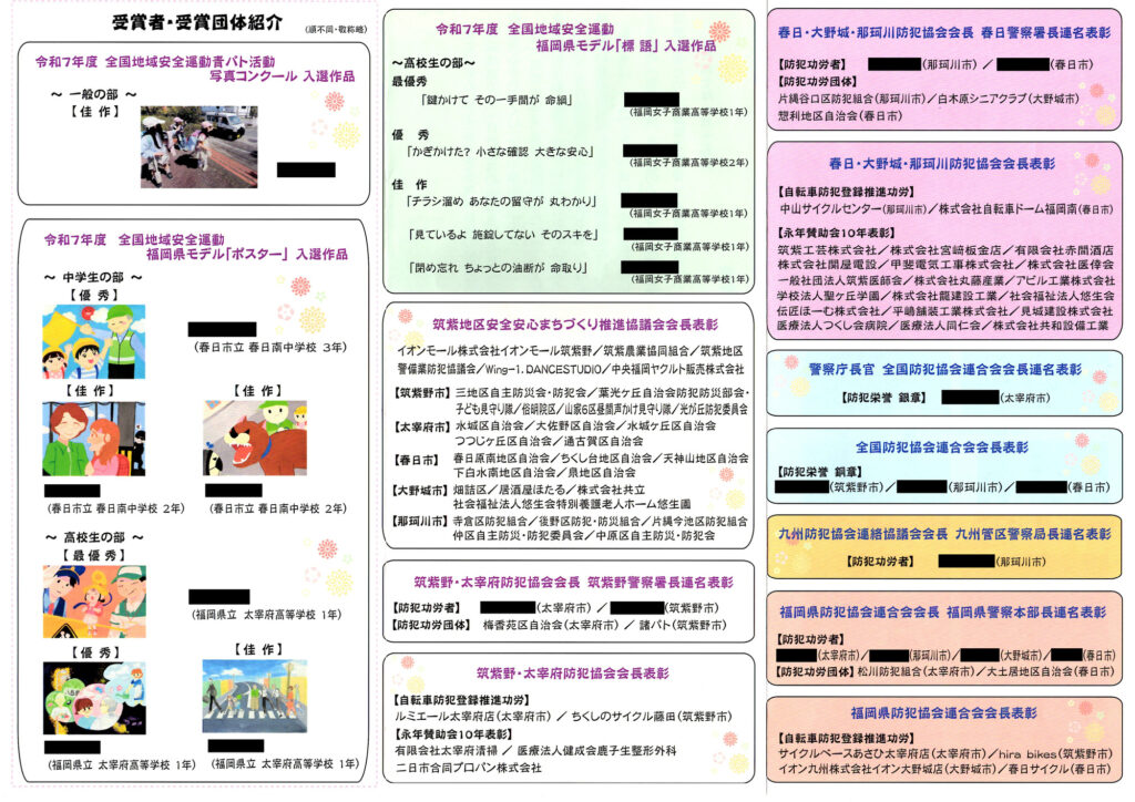 特に、筑紫地区は、県下最多の青色防犯パトロール団体を有し、各地区において活発な活動を続けており、自主防犯活動の輪は、確かなものとなっています。