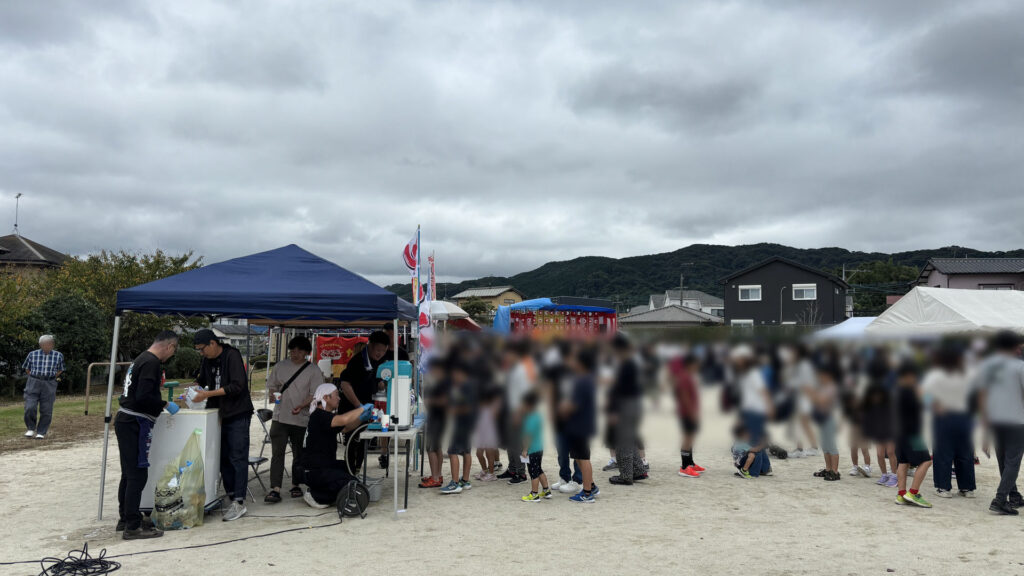 かき氷は途中で氷がなくなり一旦販売休止。氷を調達して販売再開、約300杯を販売しました。16時終了でしたが、15時には完売。他の飲食ブースも完売でした。