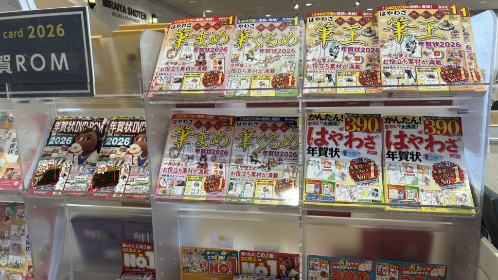 未来屋書店で文庫本と年賀状の素材集を買いました。素材集はパソコン教室で使います。年賀状じまいをした方も多いですが、まだ数人には出すという方もいます。