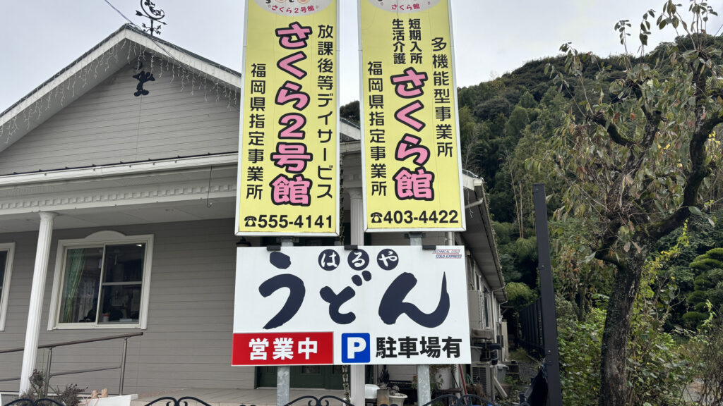 私は新しいうどん屋が目的。那珂川市商工会に行くたびに「はるやうどん」という看板が気になっていました。Googleマップで調べるとクチコミが良い感じ。