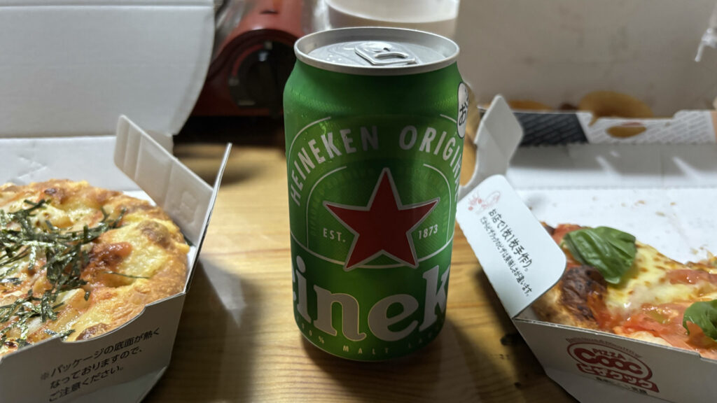 ピザにはハイネケン(個人的に)。ご馳走様でした。