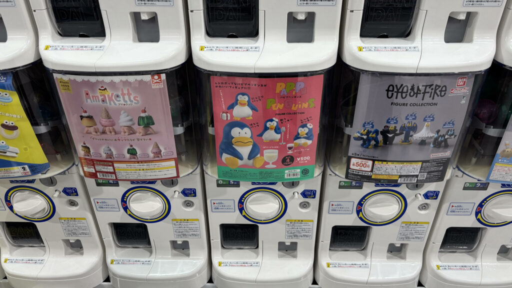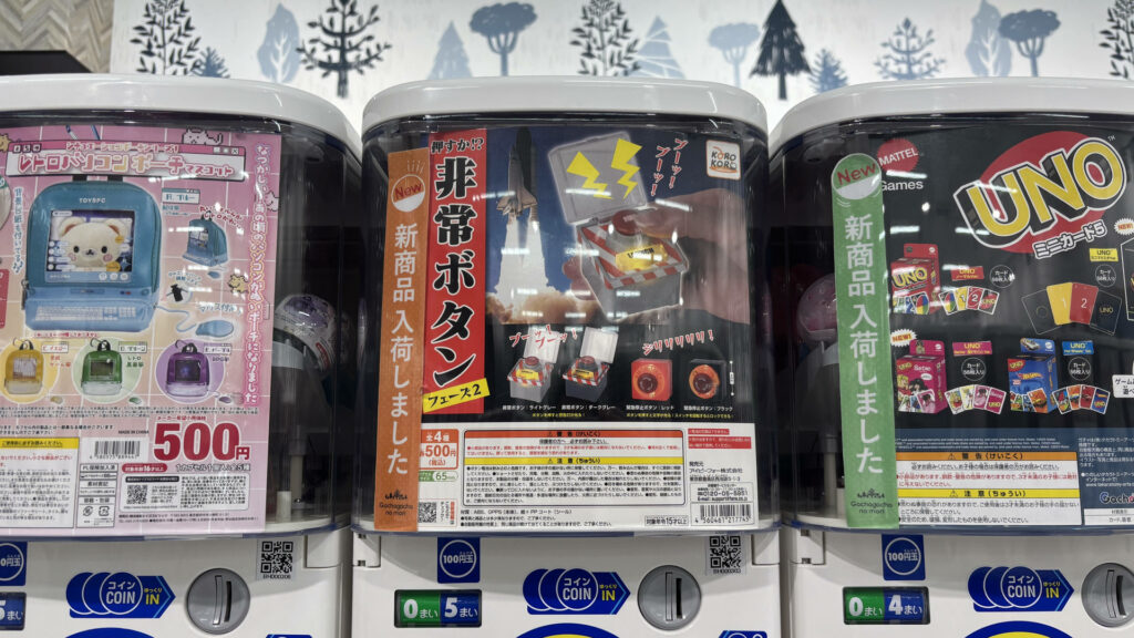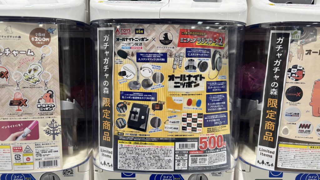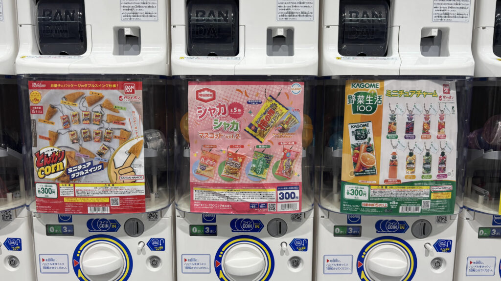ここ数年、ガチャガチャが熱いですね。イオンなどの商業施設に「ガチャガチャの森」など、300円~500円で、ものすごい数のガチャガチャが設置されています。子どもから大人まで欲しくなるような幅広いアイテムがあり、2024年度の市場規模は約1,410億円だそうです。