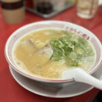 替え玉してみました。スープに入れて食べてみると、あまり味がしません。スープを飲みながら麺を食べました。ここでは替え玉より大盛りにした方が良いかも。ご馳走様でした!