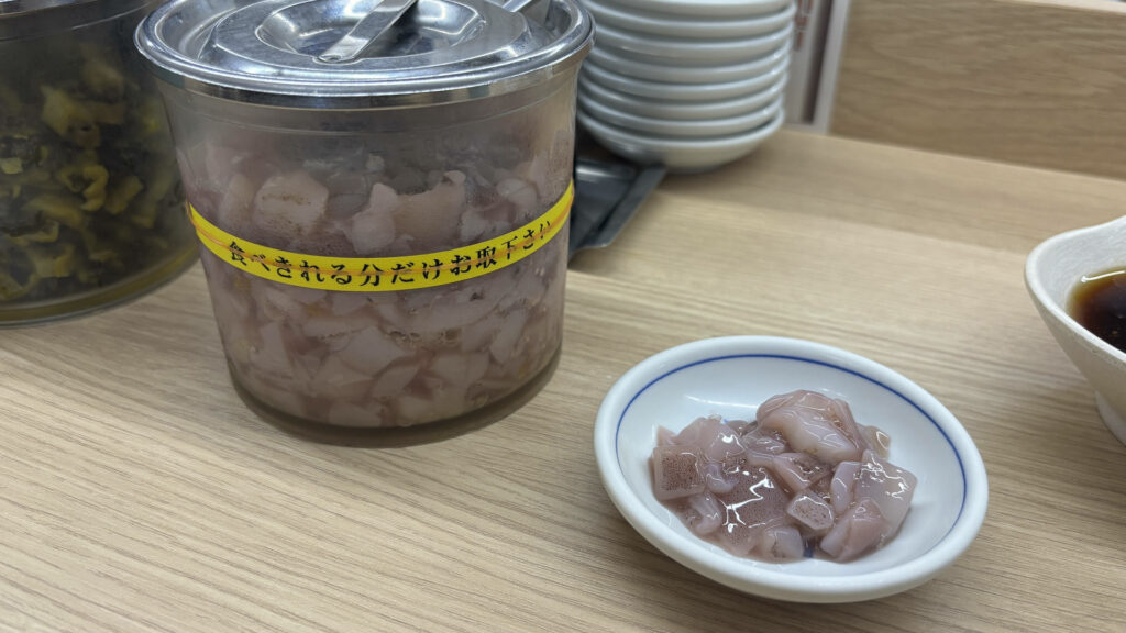 本日は日曜、11時オープンで、11時15分位に到着しましたがもう満席で、番号札は8番。オープン前から並んでたんでしょうね。10月にリニューアルしたみたいで、更にお客さんが増えたんでしょう。20分以上待って、カウンターに案内されました。
