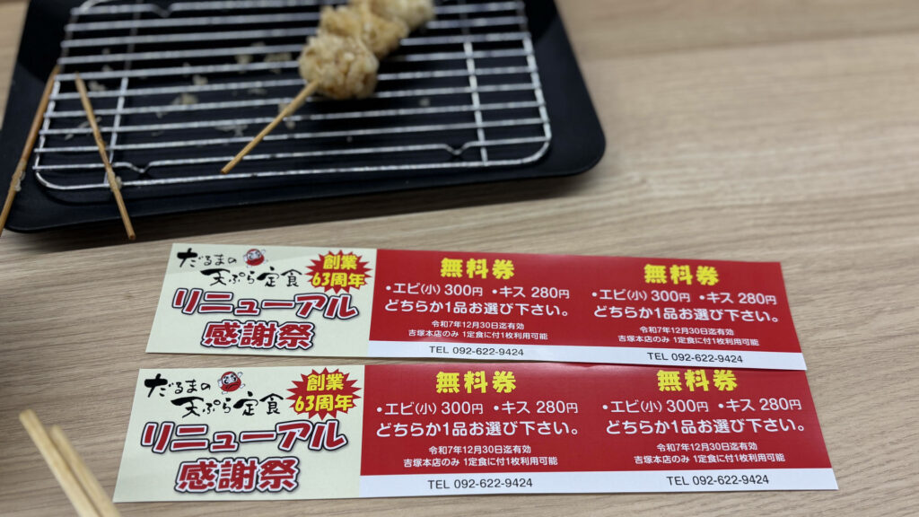 娘と博多区に行ったので、近くにある「だるま」で天ぷらを食べることにしました。