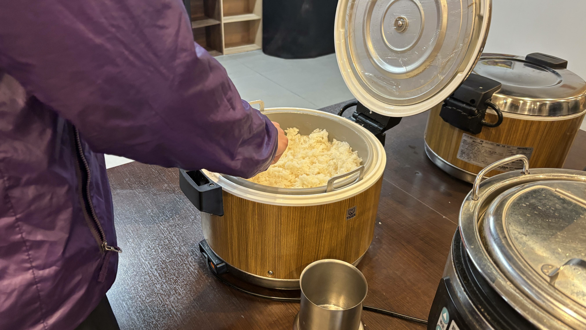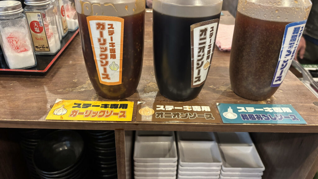 会計を済ませ、ご飯やスープやキムチを取ってスタンバイ。タレは今回はガーリックソースのみで攻めました。