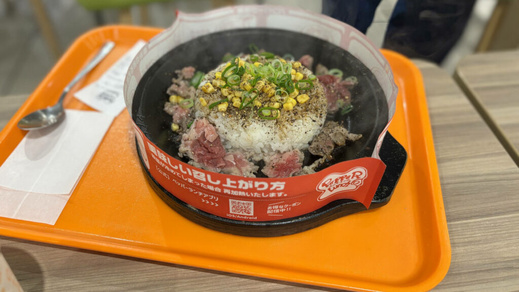息子はペッパーランチのペッパーライスお肉大盛りライスL。