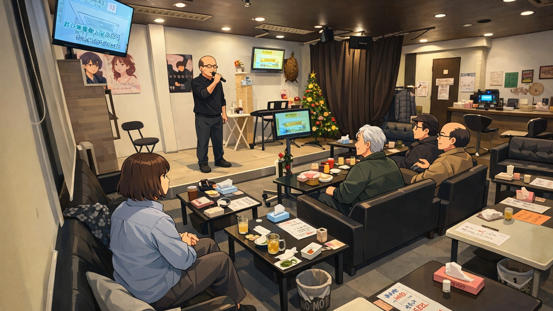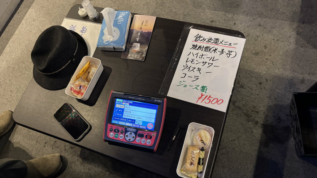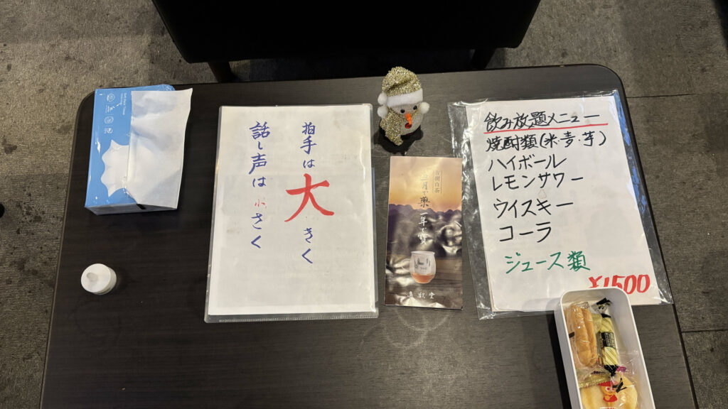 30席ほどあり、この日は先客が3名いらっしゃいました。歌うときはステージです。みなさん歌がめちゃくちゃうまくて、ディープな世界を堪能しました。