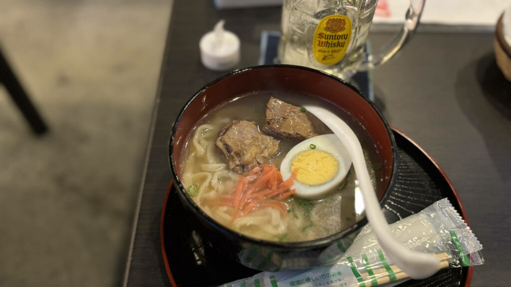 沖縄そば推しみたいで薦められたので、みんなでいただきました。美味しかった。3時間くらい滞在して、城南区に戻りました。私は野間からそのまま帰るか迷いましたが、お客様が長浜御殿で二次会中とのことで、一緒にタクシーで行きました。