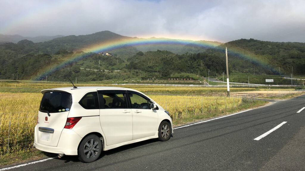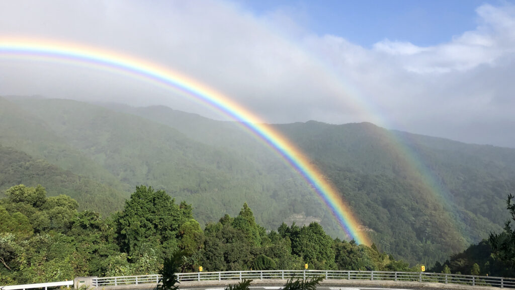 途中の道の駅吉野ヶ里町「さざんか千坊館」はよく虹が出ます。朝のデジタルルーティンで5年前の写真に出てきました。ダブルの虹です。