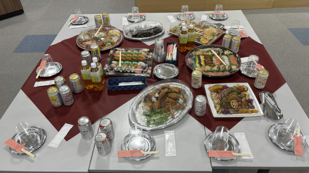 講演が終わって事務局と理事で椅子やテーブルの配置換えをし、名刺交換会(懇親会)。島川本店さんの仕出しを美味しく頂きながら、いろんな方とお話しできました。最後は抽選会。受付でもらったお箸に貼ってある番号が呼ばれます。私はいちども当たったことありませんが、今回も当たりませんでした。