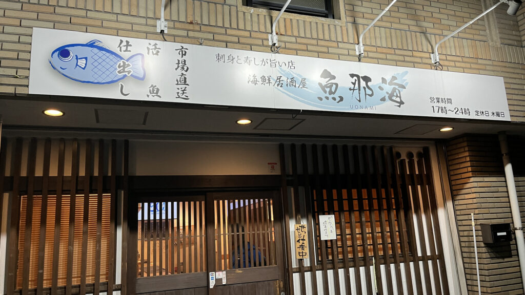 途中止まることなく、18時50分に目的のミーティングポイントに着きました。そこから少し歩いて魚那海に18時55分に到着。