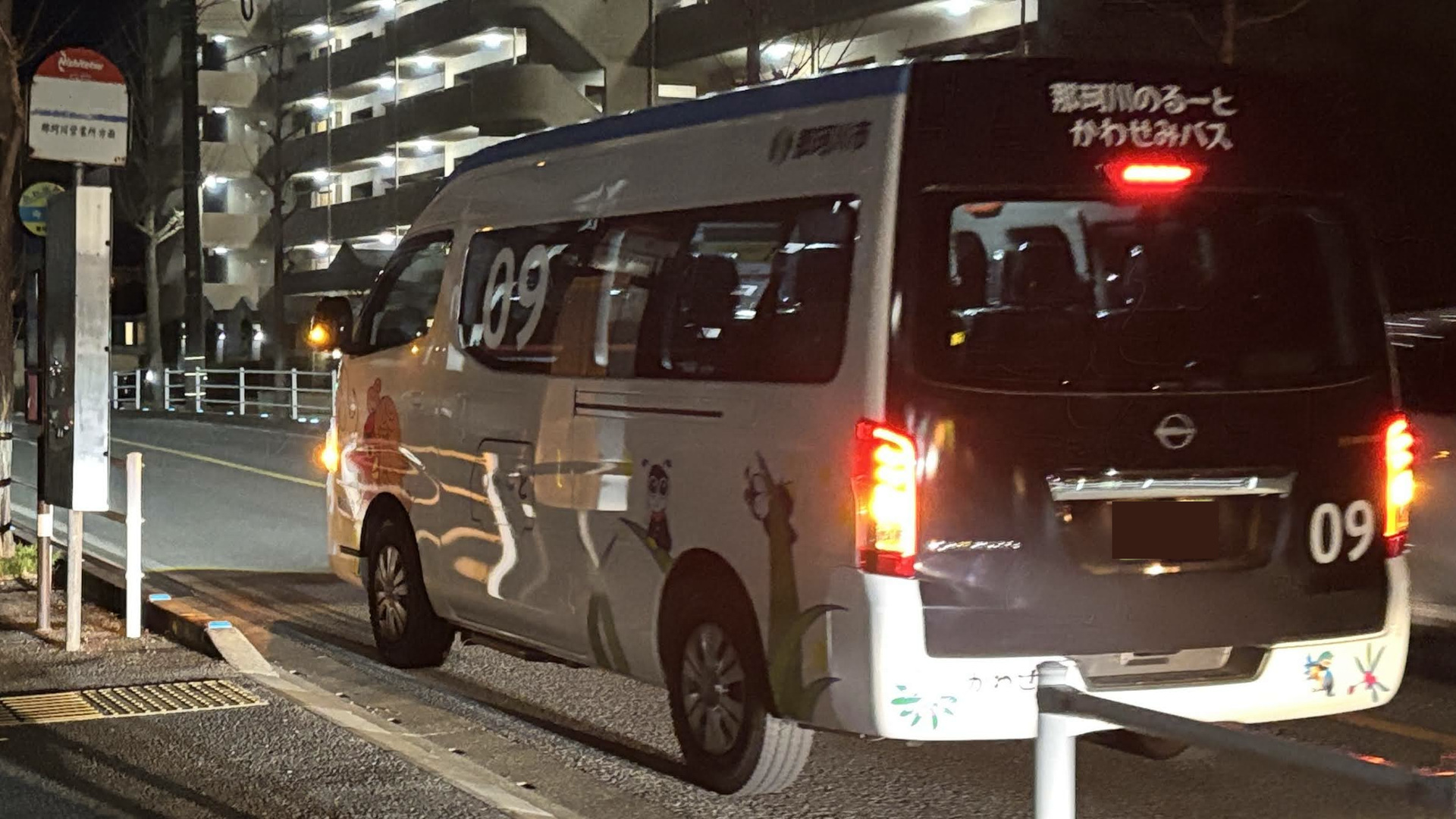 18時45分位にミーティングポイントに向かってたら、乗る予定のバスが走っているのが見えました。予定よりバスが早く到着。18時46分に乗って発車。早くなることもあるんですね。先客は1人乗ってありました。