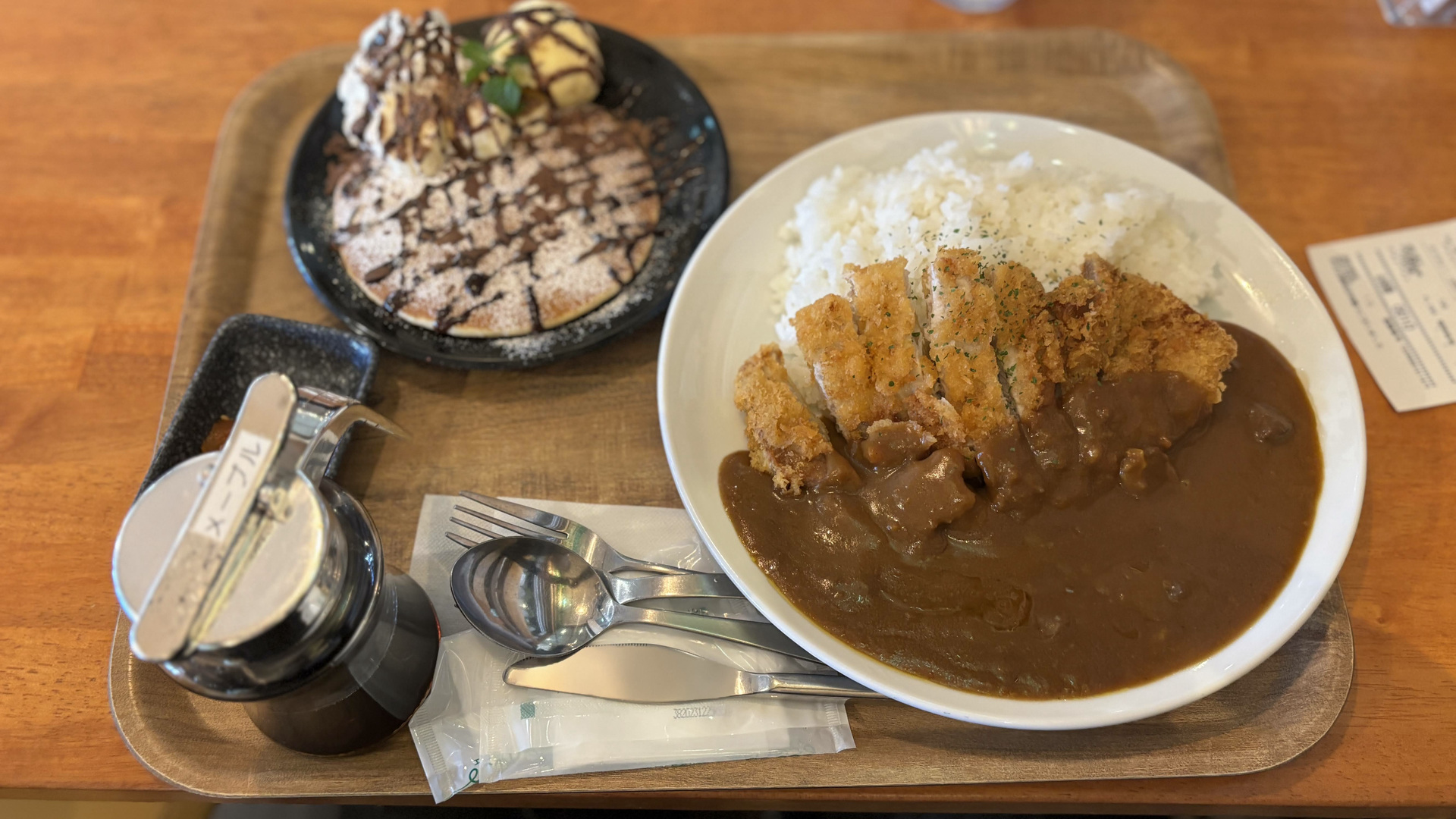 娘と博多区に行き、帰りにウェストカフェでランチをしました。 娘はチョコバナナパンケーキのシングル、私はカツカレーをオーダー。フードコートのように、呼び出しベルが鳴ったら取りに行きます。 普通のカレーですが、こういうのが良いんですよね。美味しかった、ご馳走様でした!! Info カフェ&和定食ウエスト 麦野店福岡市博多区三筑1丁目5−8 感想を送る