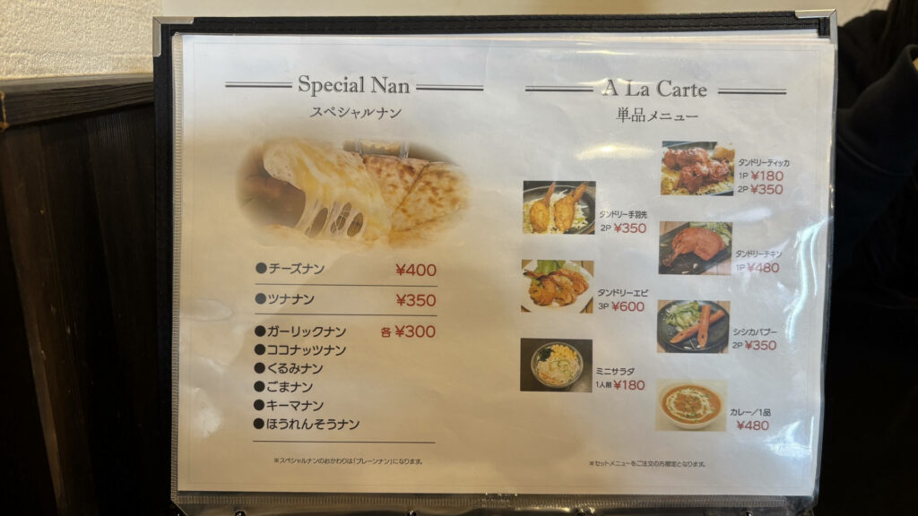ナンはハーフナンをお代わりして、二人で分けて、ちょうど良い量でした。