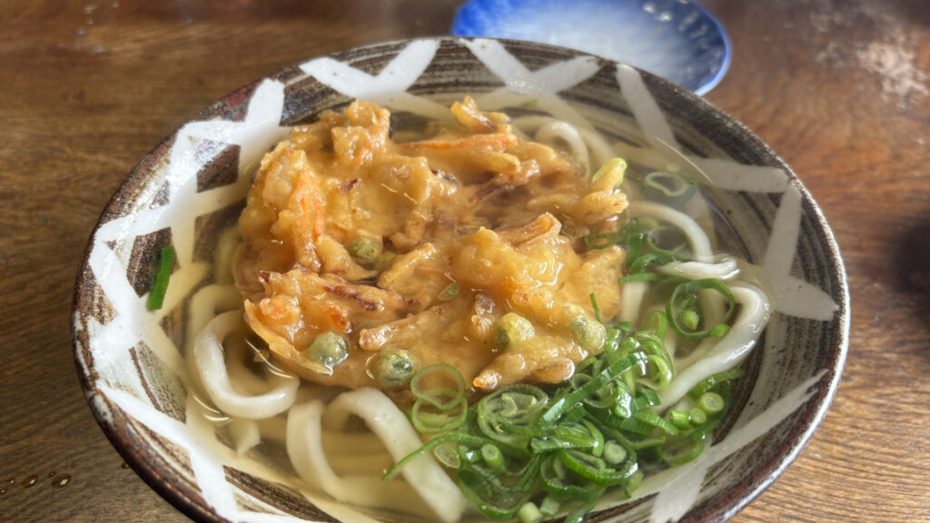 うどんが来てかき揚げをトッピング。優しいスープと、前回食べたときはコシの無い柔らかい麺でしたが、今日は少しコシのある麺です。めちゃくちゃ美味しい!というわけじゃないけど、時々来てしまう。お値段も優しいし、接客も優しいからね。いや、お値段考えたら十分美味しい。
