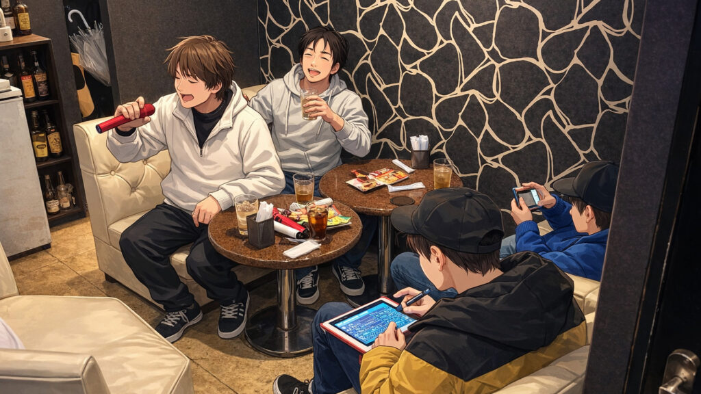 7名中、カラオケ好き3名で歌って、盛り上げました。