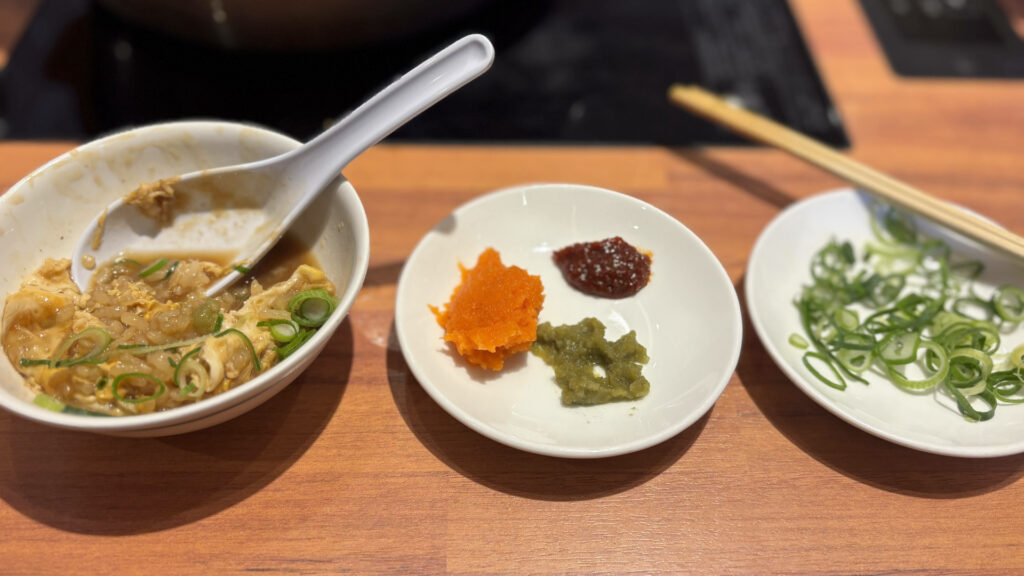 いろんな薬味を入れて味変しながら食べました。娘は味見のひとくちだけ。
