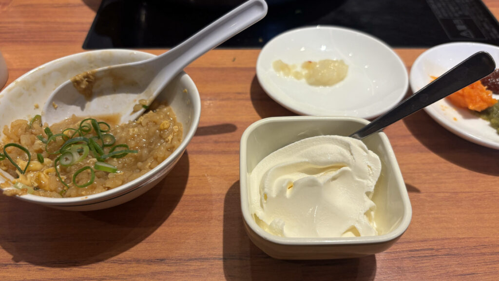 途中でアイスタイムを挟んで味をリセット。がんばって食べました。二人で3,800円で超満腹、ご馳走様でした!!