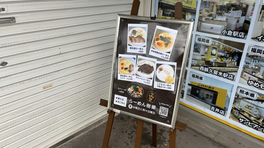 「らーめん樹樂」というお店になっていました。しかも営業は水曜日と時々日曜日。今度食べに来てみようかな。