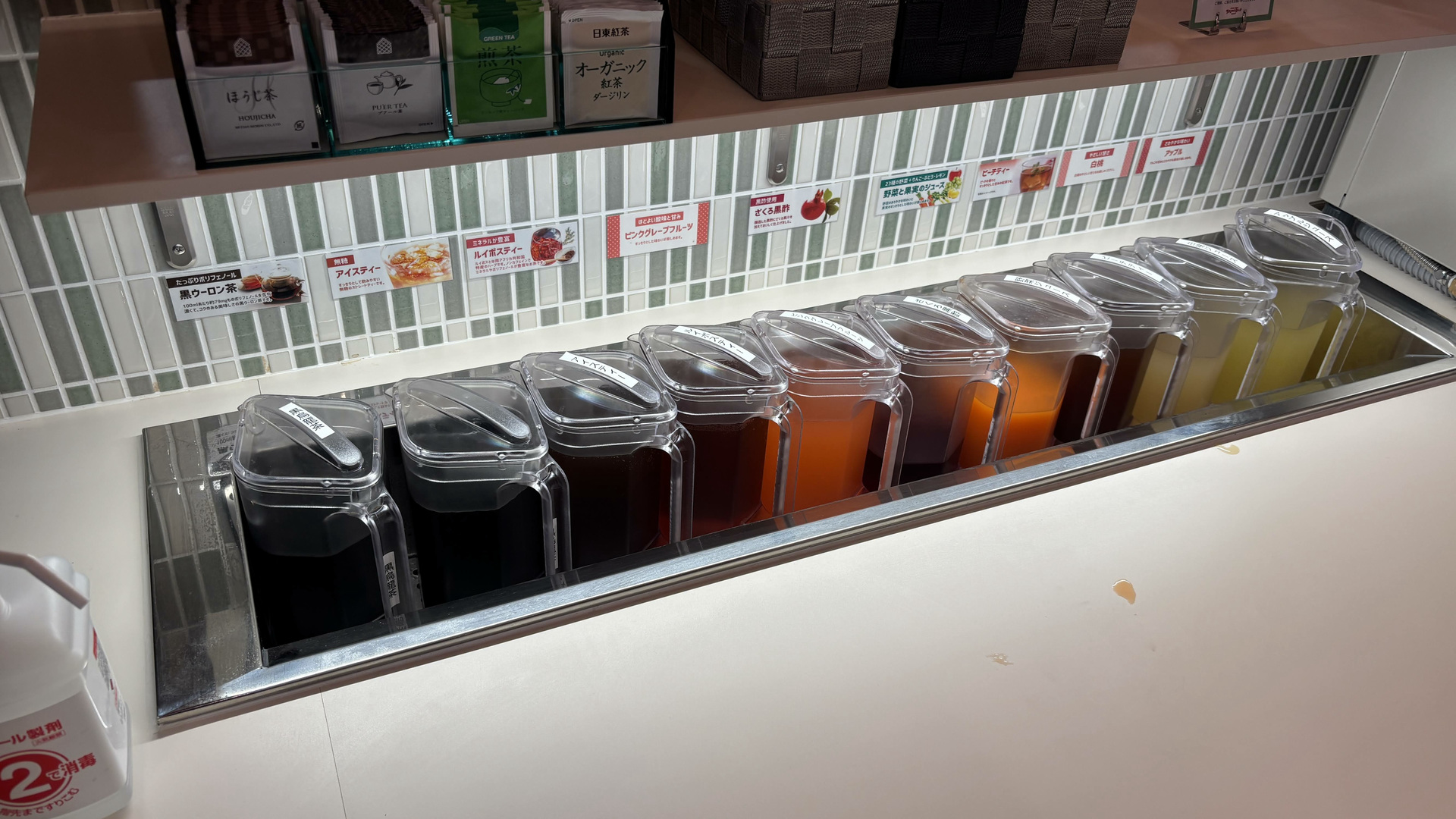 ドリンクバーはよくあるマシンと、ポットも置いてあり種類が豊富です。