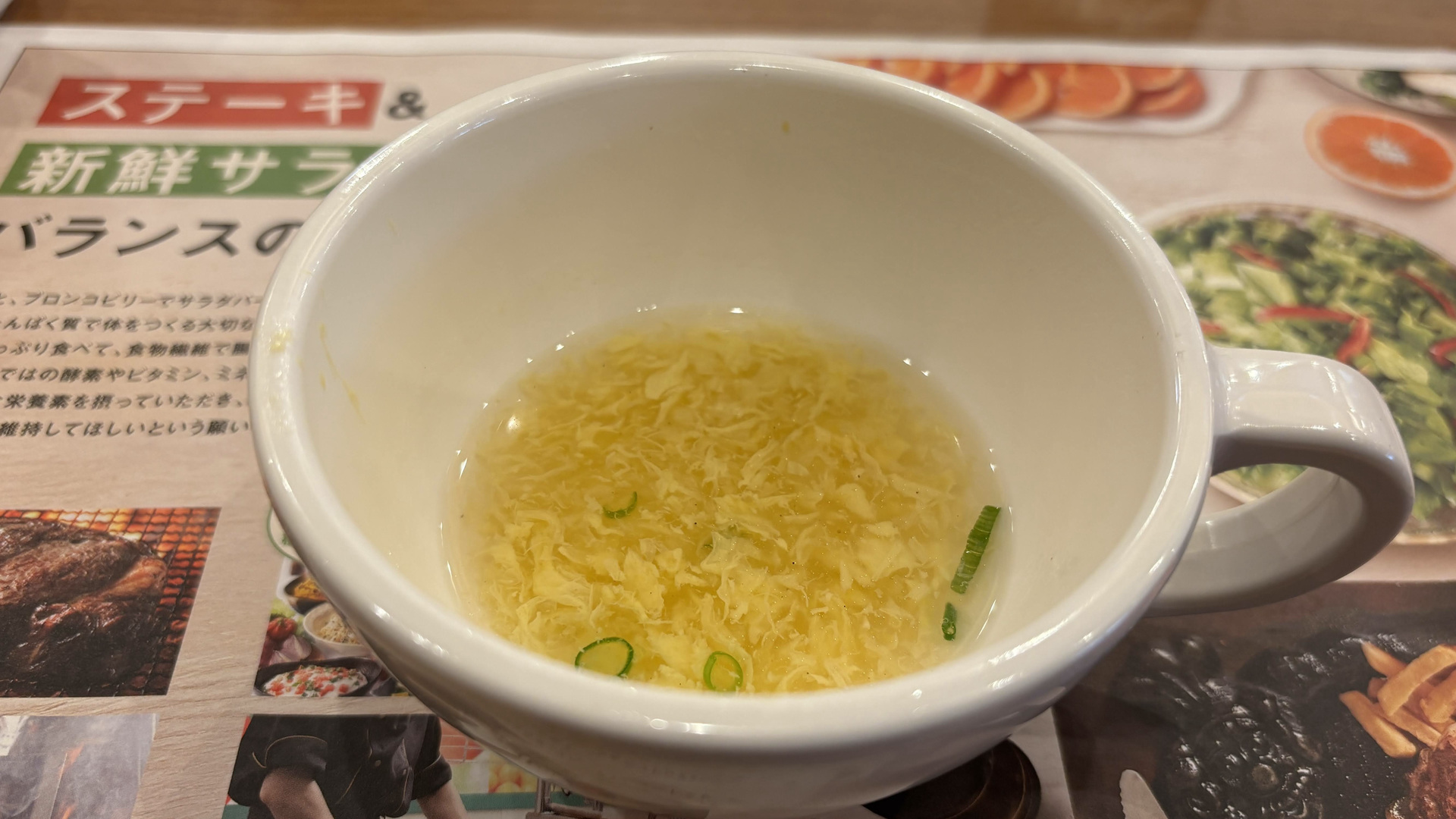 ランチに付いてくるたまごスープはなぜか香ばしい。たまごが焦げてるのかな。