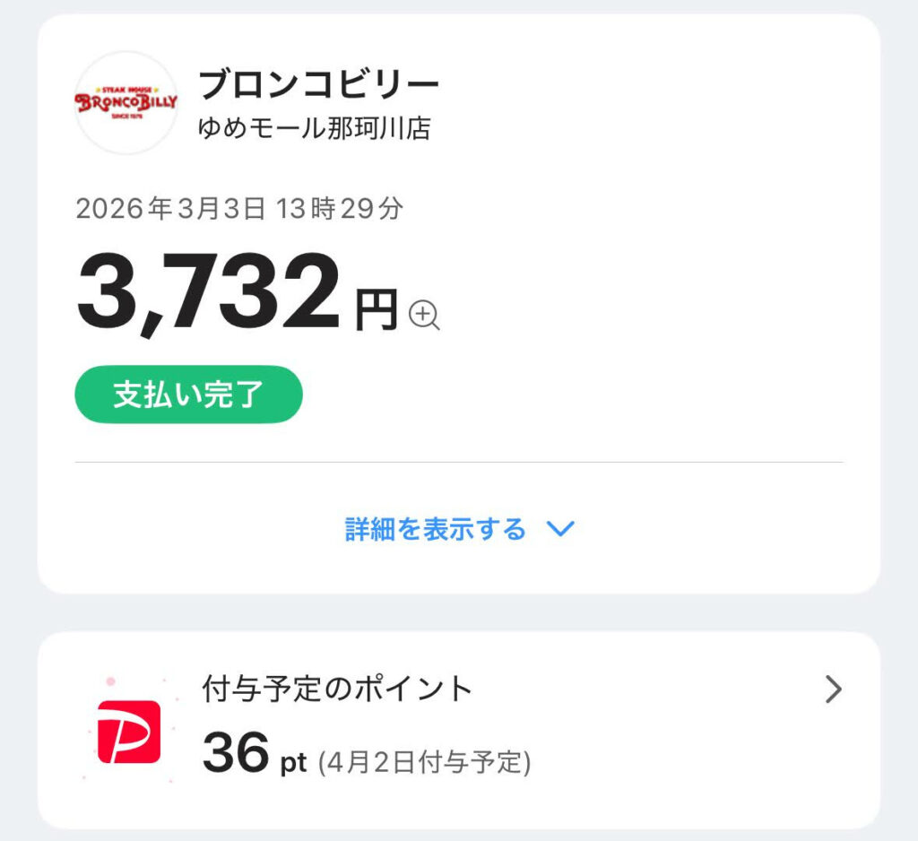 そのままの会計だと5,148円、でも知人からジェラート&ドリンクバーの全員無料券と、スクラッチカードで200円引きを4枚もらってたので、全部同時利用ができて3,732円になりました。そうなると安いですね。PayPayが使えます。